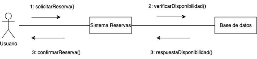 A diferencia de un diagrama de secuencia, aquí no importa tanto el “tiempo vertical”, sino la red de relaciones que hace posible que los mensajes fluyan.