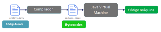 Normalmente un lenguaje es compilado o interpretado. Java es ambas cosas. El código fuente se compila para obtener los bytecodes y posteriormente la máquina virtual interpreta esos bytecodes y los convierte en código máquina.