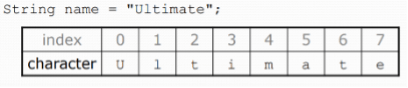 Cada uno de los caracteres que forman un String son del tipo primitivo char. Los caracteres de un string están numerados internamente con índices empezando desde el cero: