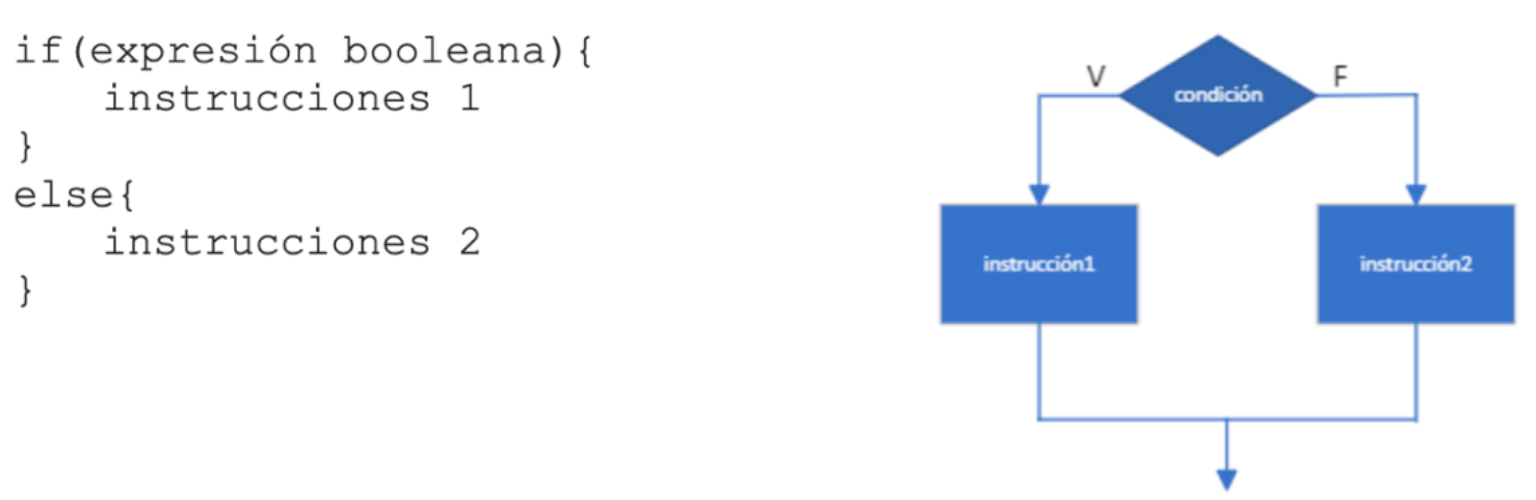 Se evalúa la condición y si esta se cumple se ejecuta una determinada instrucción o grupo de instrucciones. Si no se cumple se ejecuta otra instrucción o grupo de instrucciones.