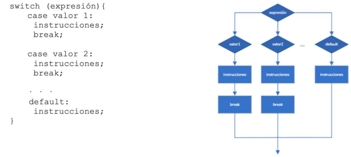 Se utiliza para seleccionar una de entre múltiples alternativas. La forma general de la instrucción switch en Java es la siguiente: