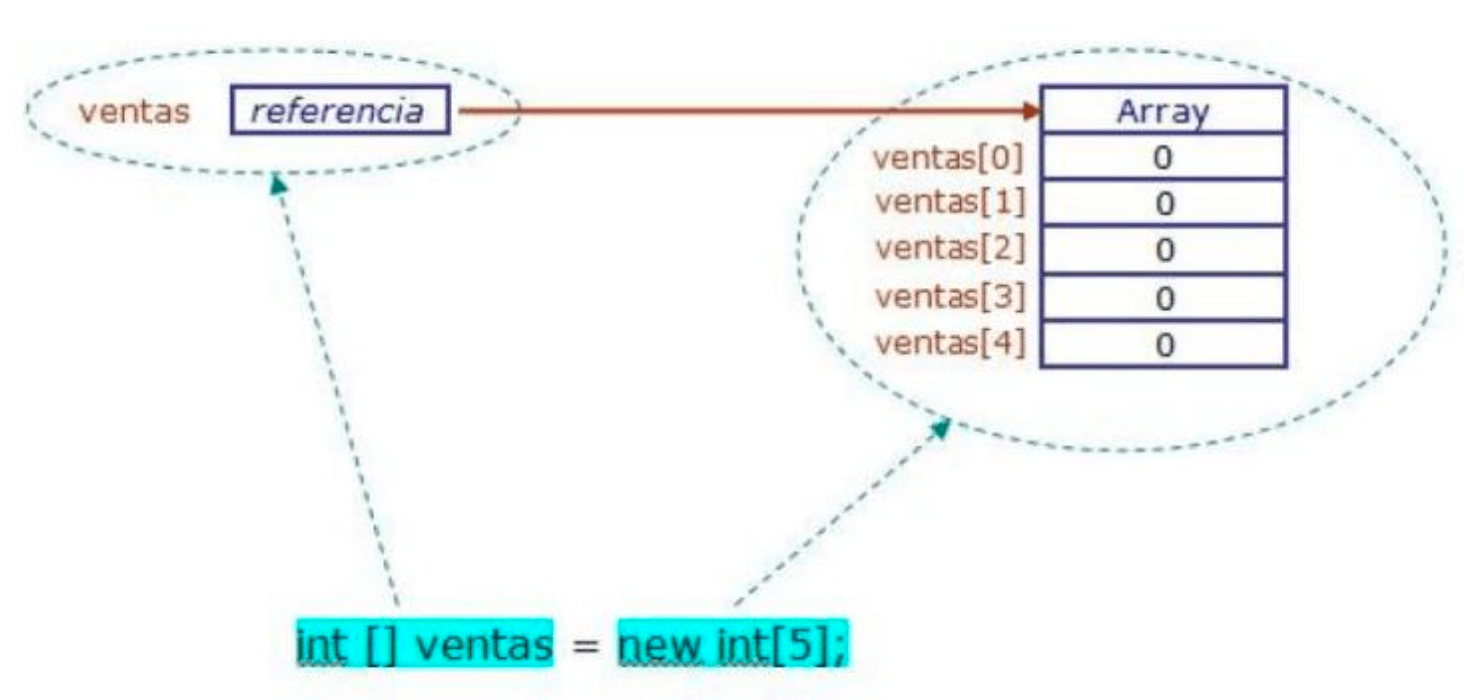 ventas = new int[5]; //se reserva memoria para 5 enteros y se asigna la dirección de inicio del array a ventas.