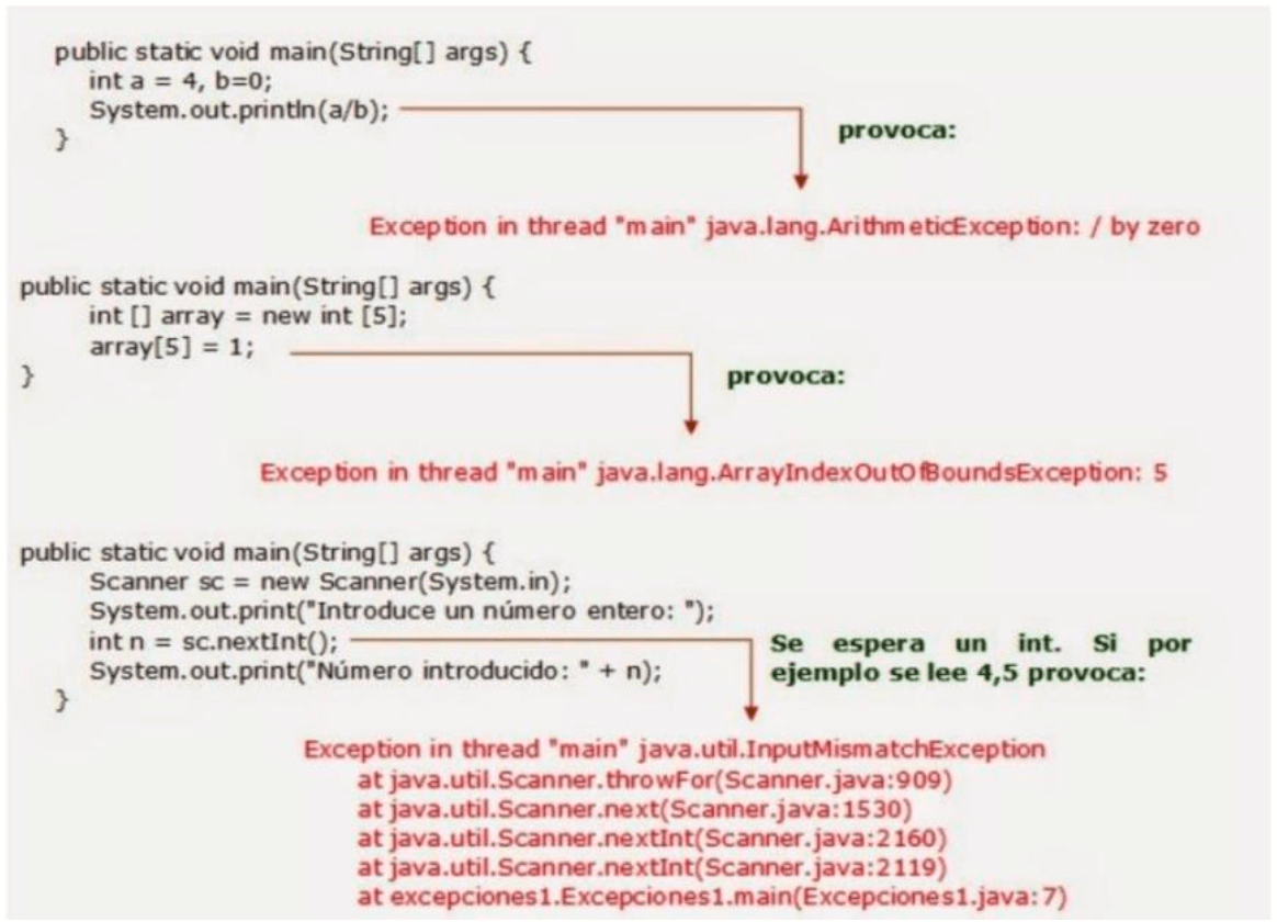 • La Máquina Virtual Java crea un objeto excepción y lo lanza. El objeto excepción creado contiene información sobre el error. La ejecución normal del programa se detiene.